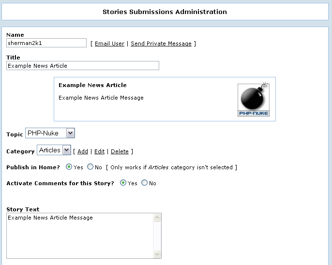 When a user submits a news article, it goes in a queue to be accepted by an administrator. To view news submissions