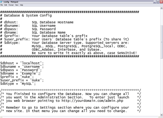 These can and should be left alone when using nukesql.php, and have to match the prefix in the nuke.sql file.