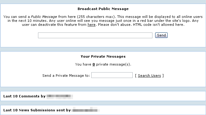 This includes the number of news articles to show in the home page, whether to get a pop-up when new private messages arrive or not,