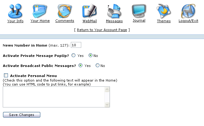whether you wish to see broadcast messages in the top of the page or not, and any extra options you wish in the home page, like links etc.