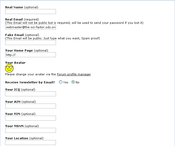 about you. These include Your name (if you wish to make it publicly known, your email address, your signature for the forums and
